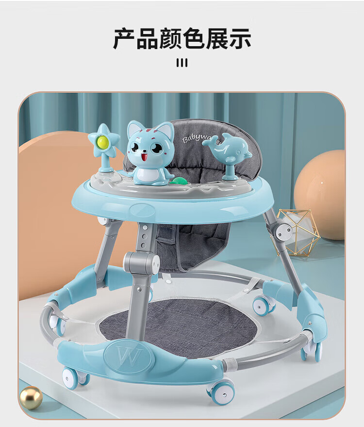 Shien Sit-to-Stand Learning Walker anti O-shaped leg baby multifunctional anti roll stroller for babies and children can sit and push the sky blue early childhood education+light music universal ordinary wheel [Image price brand quotation]-