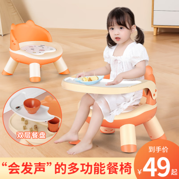 Baby Phoenix Baby Highchair Baby High Chair with Tray Children Adjustable Baby Highchair Multifunctional Home Stool 0-8 Years Old (PVC Cushion+Double Layer Dining Plate) Orange