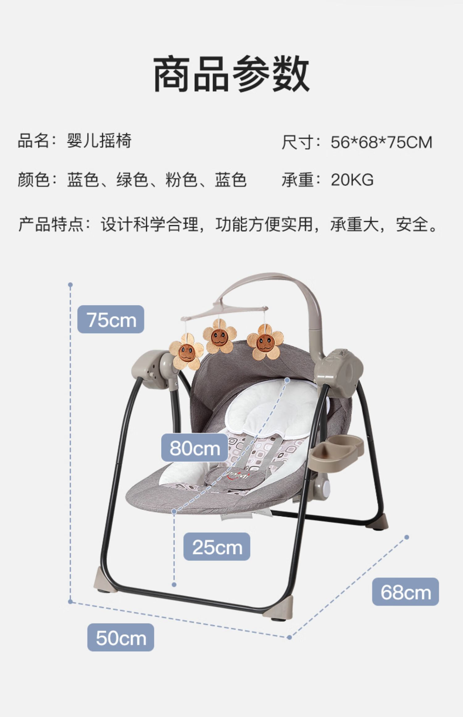 Baby Electric Rocker Chair Comfort Chair Baby Rocking Cradle Baby Baby Baby Sleeping Basket Lying Chair Shake Mocha Grey - Regular Edition+[Three Piece Set] [Image Price Brand Quotation]-