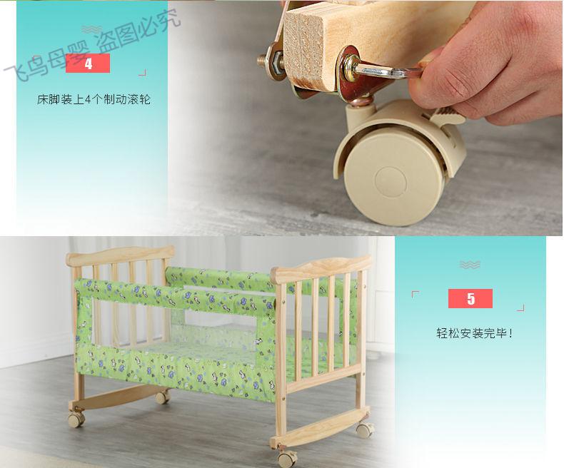 Baby Crib Solid Wood Eco-friendly CribBB Bed Convertible Crib Small Infant Crib I-shaped Infant Crib mosquito net Parallel Swing Belt mosquito net Hanging Rope Infant Crib (No Wheel