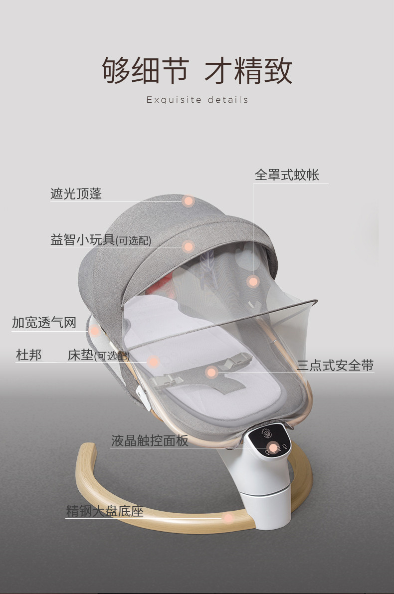 Newborn rocking chair can be reclined and seated, baby rocking chair can be used to comfort babies, baby rocking chair can be used to comfort newborn babies, electric rocking cradle reclining chair, wood grain luxury model [dual axis swing hard board...