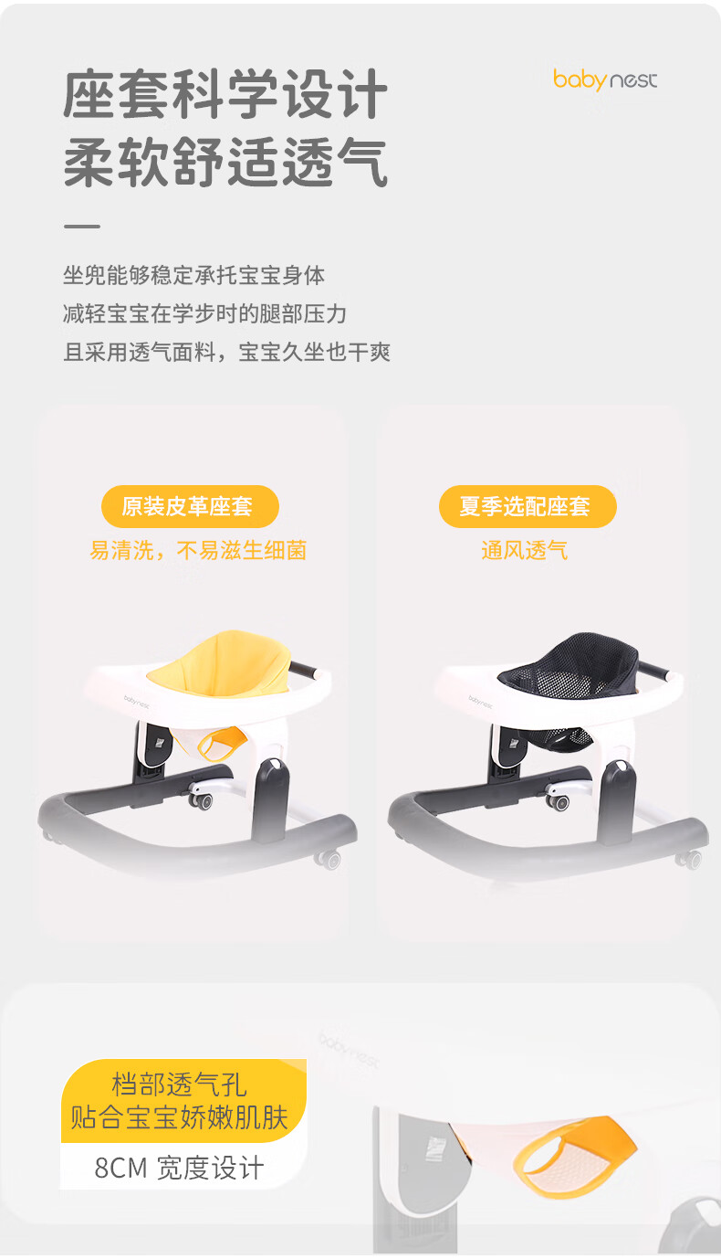 Babynest Baby Sit-to-Stand Learning Walker O-shaped Leg Rollover Prevention Baby Sit-to-Stand Learning Walker Multifunctional Stroller Baby Walking Aid Children's Toy Black [Summer Mesh Seat Edition]
