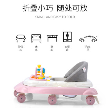 Jun Kiss Baby Sit-to-Stand Learning Walker Anti O-shaped Leg Multi function Anti Rollover Small Children's Starting Car Boys and Girls Baby Walker Flagship Edition Sky Blue Ribbon Music Box Long and Short Push